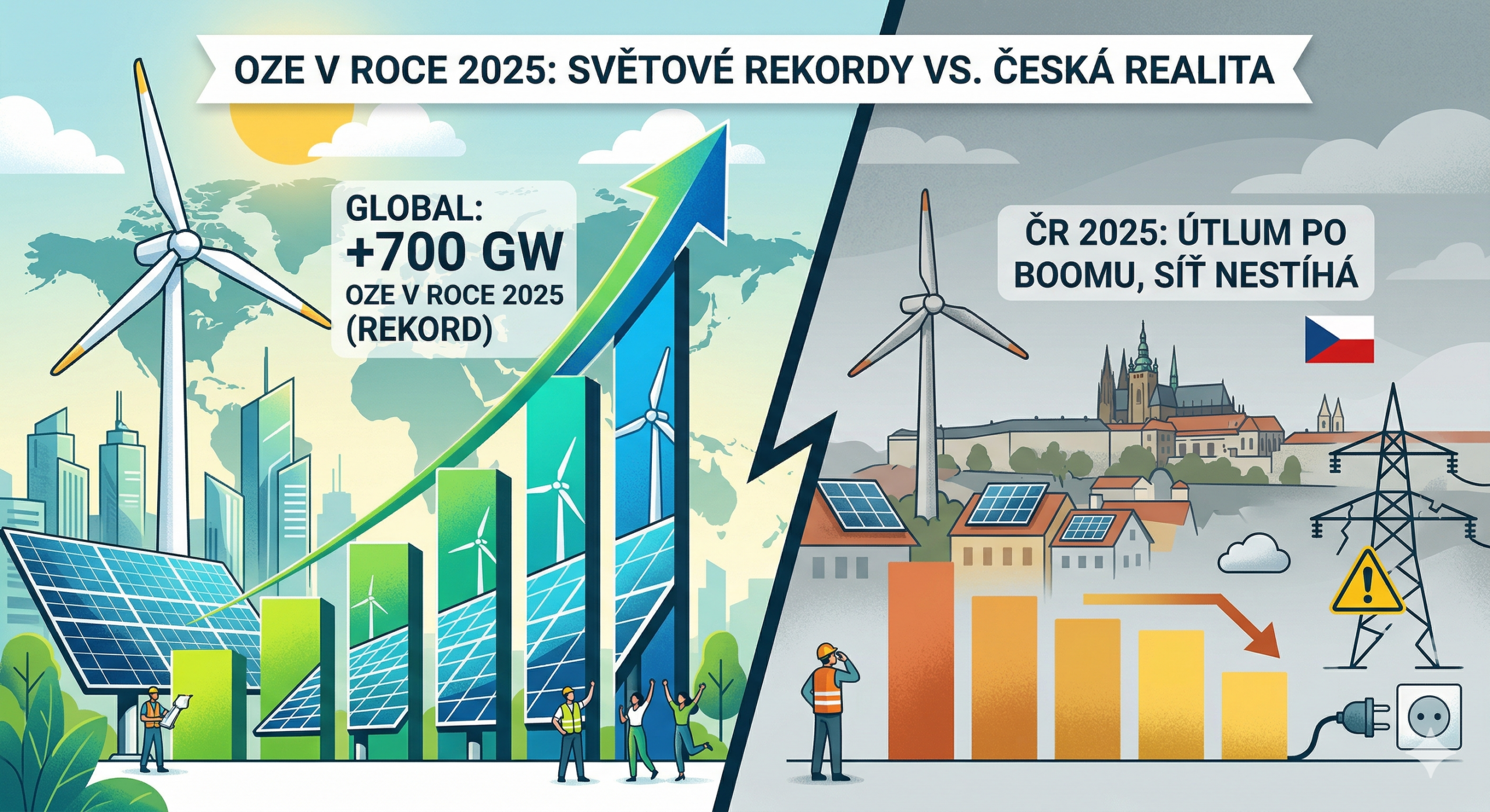 Zatímco Mezinárodní agentura pro obnovitelnou energii (IRENA) hlásí za rok 2025 historický milník v instalovaném výkonu, tuzemský trh prochází po letech překotného růstu fází stagnace.